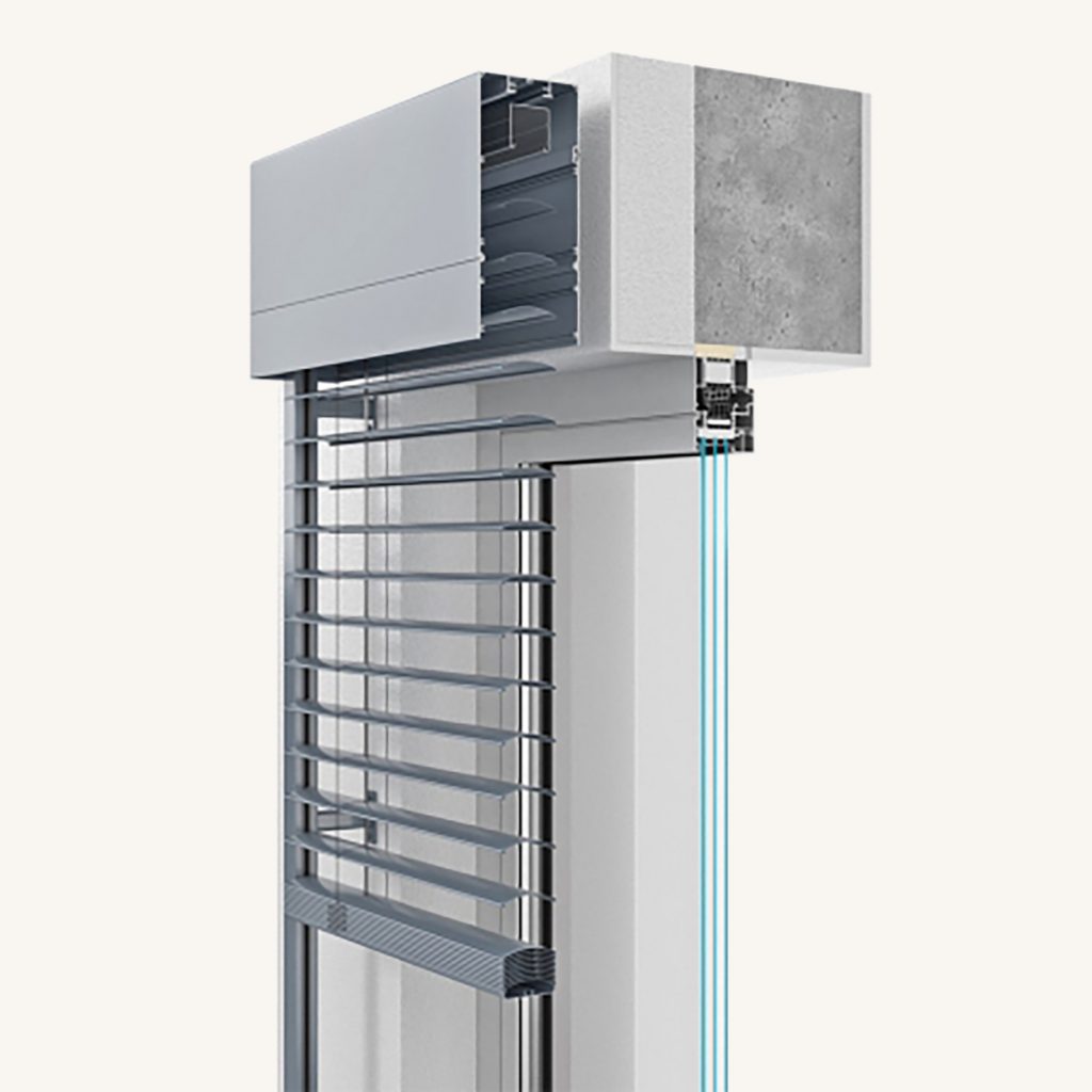 Die ideale Lösung für Neubauten oder beim kompletten Fensteraustausch. Der Rollladenkasten wird direkt auf das Fensterprofil montiert und bildet mit ihm eine optische Einheit. Er verschwindet nach dem Einbau fast unsichtbar in der Fassade und bietet exzellente Dämmwerte.